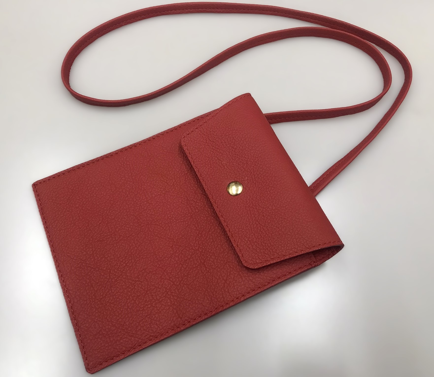 Ruční řemeslná výroba, vyrobeno z hovězí červené italské kůže ( kůže s jemným vlisem, matná ), prošité.