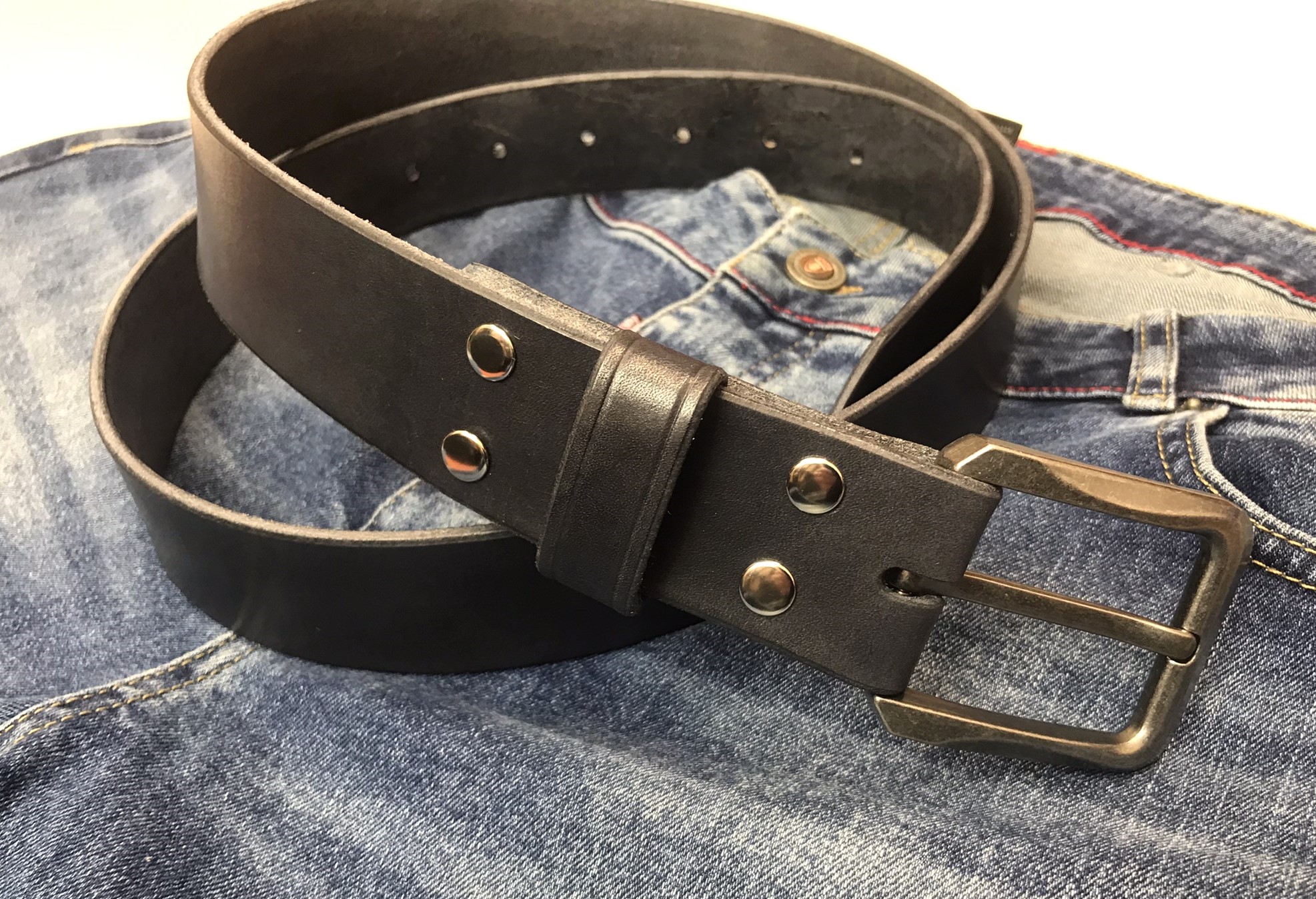 Pevná opasková přezka a pevný trn udrží materiál vždy na svém místě. Materiál: opasková přezka litá ze zinku, starostříbro. Povrchová úprava bez příměsi niklu. Kovová přezka je napevno přinýtovaná. V případě, že by jste měli zájem o vyměnitelnou přezku ( nýty pouze šroubovací ) uveďte prosím tento požadavek v poznámce objednávky.