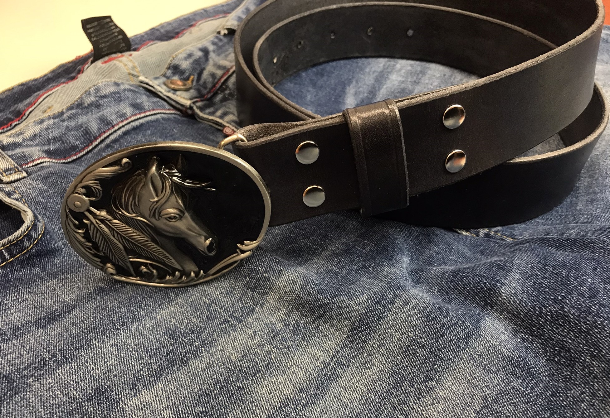 Kožený opasek 4 cm - Kůň